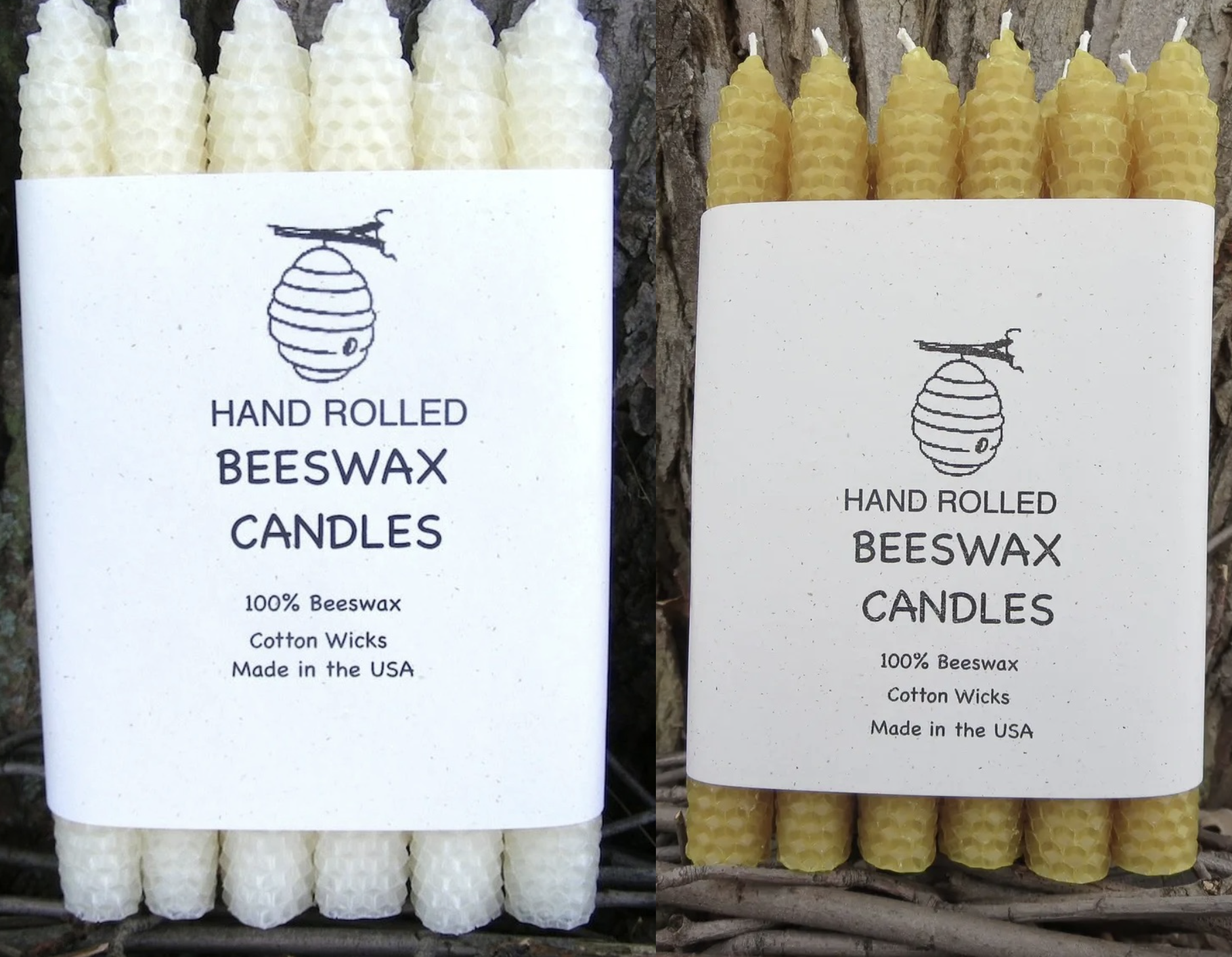 Hand Rolled Beeswax Taper Candles, One Dozen (Set of 12) - 8" Tapers - Natural or White